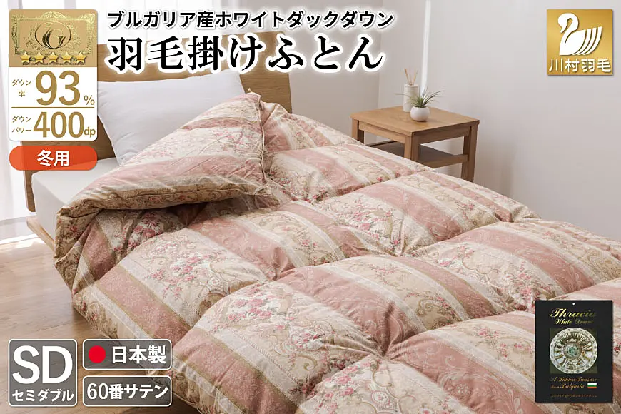 羽毛布団 掛け布団 ホワイトダックダウン93% セミダブル 1.5kg ブルガリア産 60番手サテン 赤系 [20743243]
