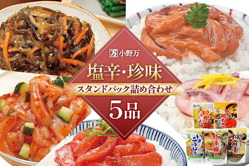 塩辛・珍味 スタンドパック 詰め合わせ 5品セット [小野万 宮城県 気仙沼市 20565724]