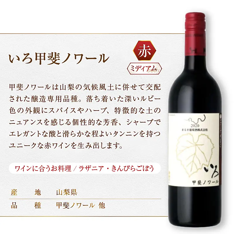 現存する日本最古のワイナリーまるき葡萄酒から人気の『いろシリーズ』飲み比べ2本セットをお届けします。
