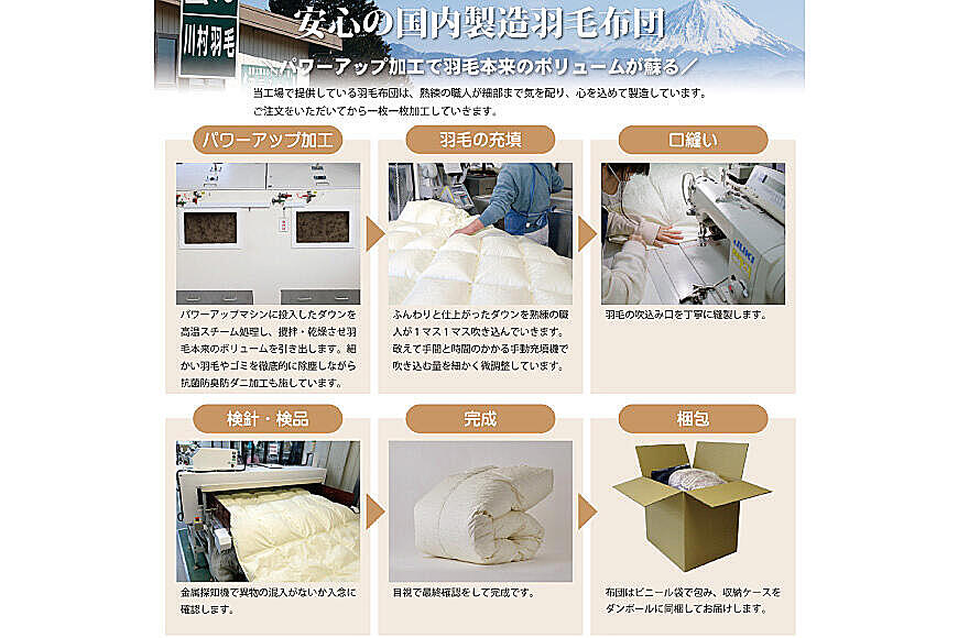 できたての羽毛布団を韮崎から直送いたします。