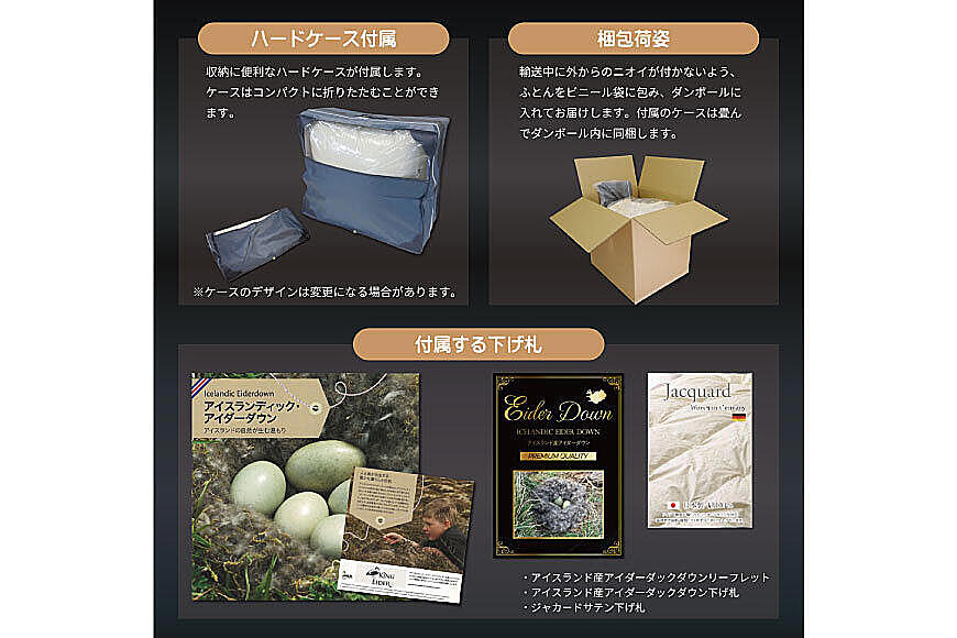 アイスランド産アイダーダウンを使用したことを証明するリーフレットが付属します。