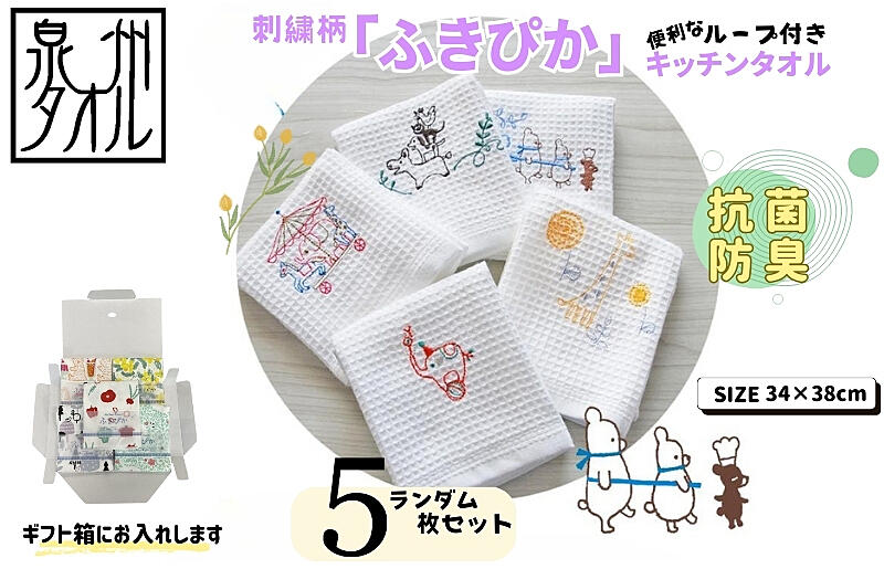 099H3911 抗菌防臭!ふきぴか キッチンタオル 刺繍入り 5枚セット