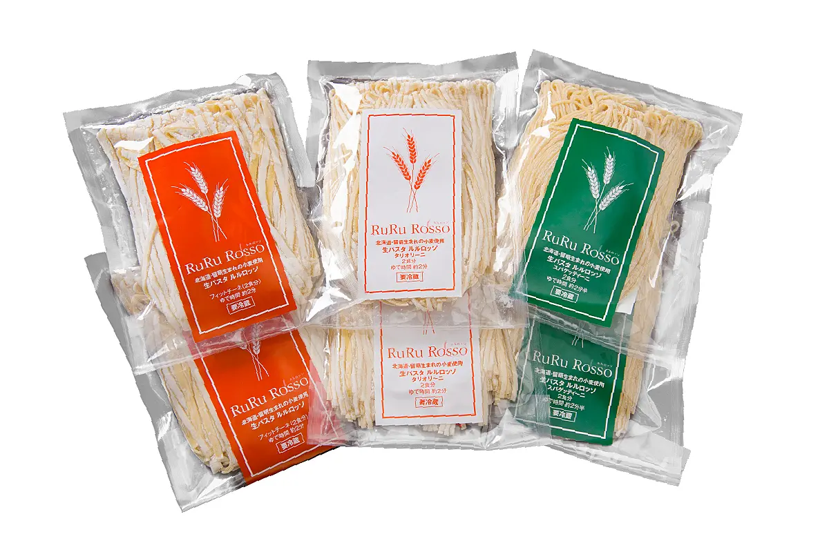 留萌産の超硬質小麦ルルロッソでつくった生パスタ「ルルロッソ」。