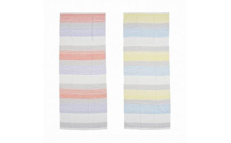 北欧の海に映った昼と夕日の太陽の光をイメージして作りました。さわやかな表情とパイル糸に糊をほとんどつけずに織っているため、やわらかく吸水のよさが特徴の泉州こだわりタオルです。