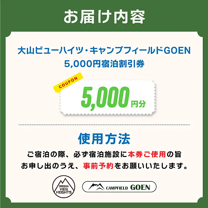 VH-01 大山ビューハイツ・キャンプフィールドGOEN 5,000円宿泊割引券