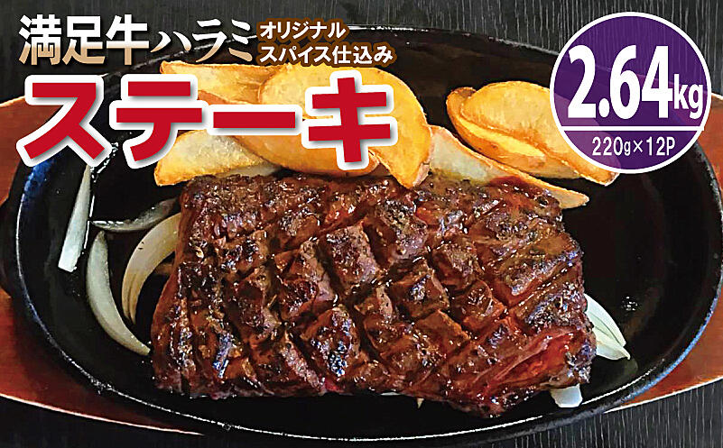G3406 【満足牛ハラミステーキ】オリジナルスパイス仕込み 1枚220g×12P 合計2.64kg