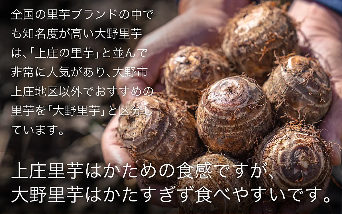 全国の里芋ブランドの中でも知名度が高い大野里芋は、「上庄の里芋」と並んで非常に人気があり、大野市上庄地区以外でおすすめの里芋を「大野里芋」と区分しています。