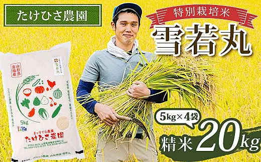 令和7年産 特別栽培米 雪若丸 (精米) 20kg (5kg×4袋) 『たけひさ農園』 山形県 南陽市 [2366]