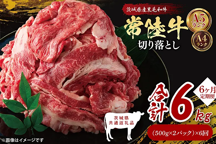 【茨城県共通返礼品】【6ヶ月定期便】常陸牛切り落とし1kg(500g×2)|ブランド牛 銘柄牛 和牛 黒毛和牛 (DD012)