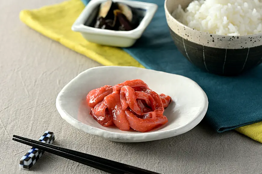 柔らかいイカとピリッと辛い明太子を和えた商品です。