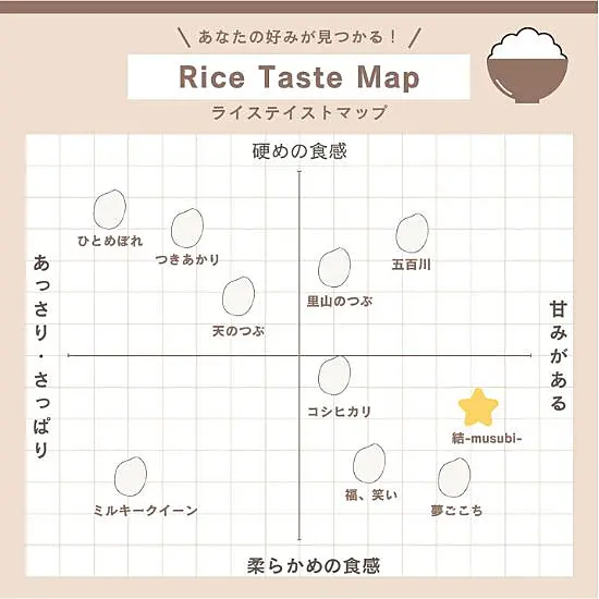 また、「結-musubi-」で使用しているお米を生産している弊社の農業法人が「縁」という名前で、ふたつの名前を合わせると「縁結び」になるのも、ちょっとしたこだわりです。