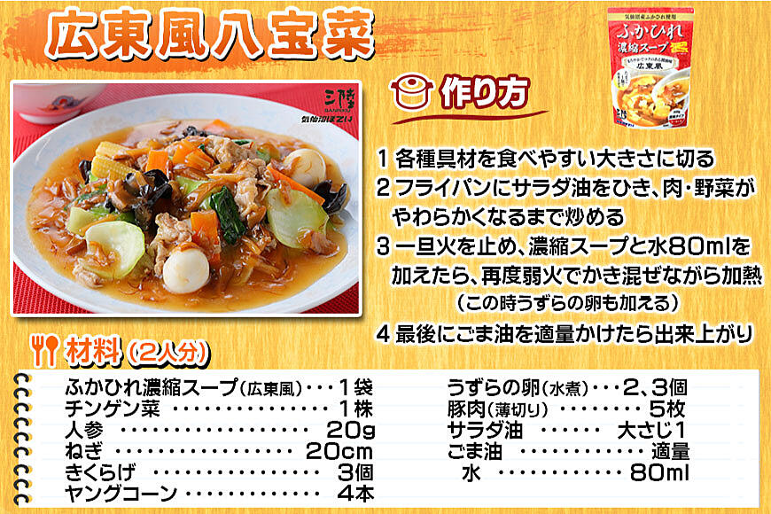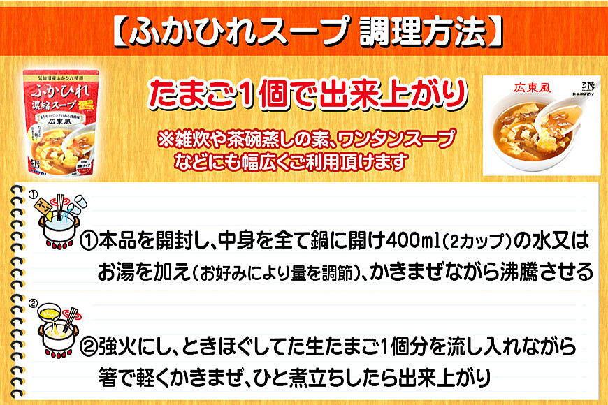 ときたまご1個分を加えるだけで、手軽に本格的なふかひれスープが楽しめます。