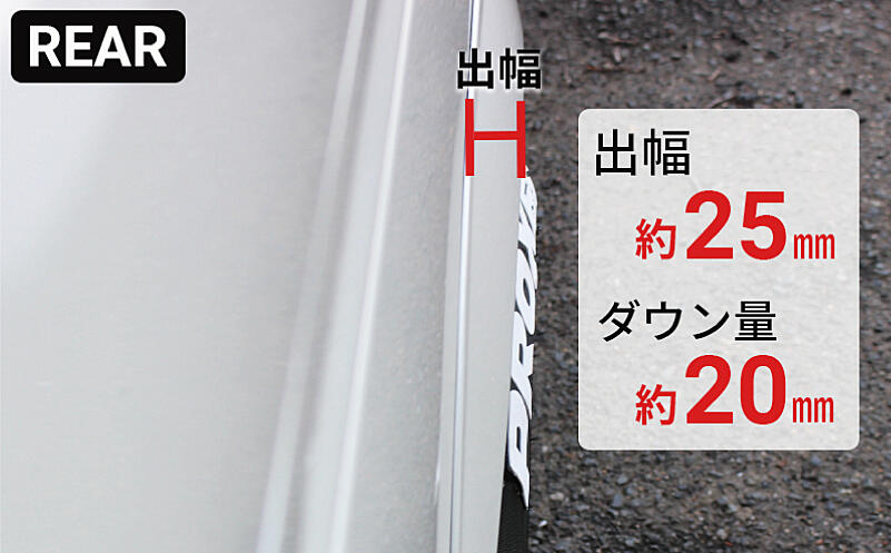 リア:片側約25mmワイド フェンダーアーチ 約20mmダウン