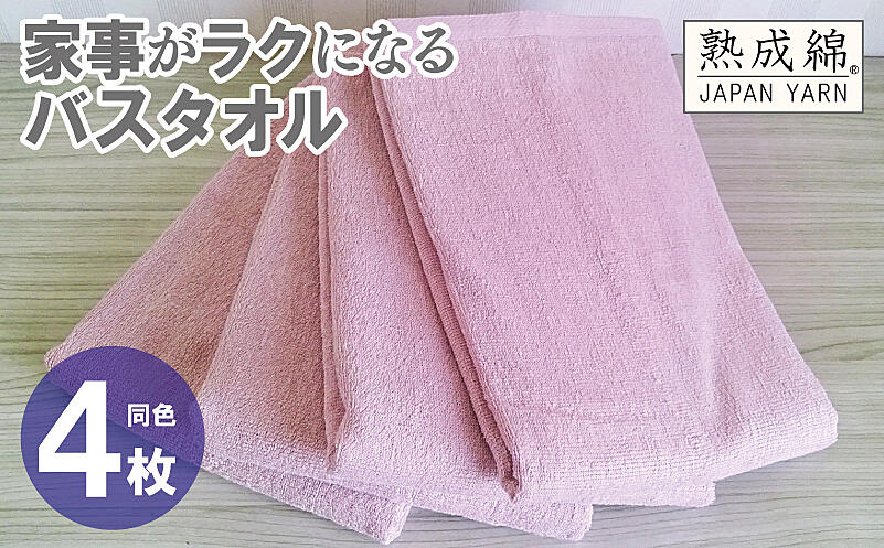 knt0085 家事がラクになるバスタオル 4枚【スモーキーピンク 泉州タオル】