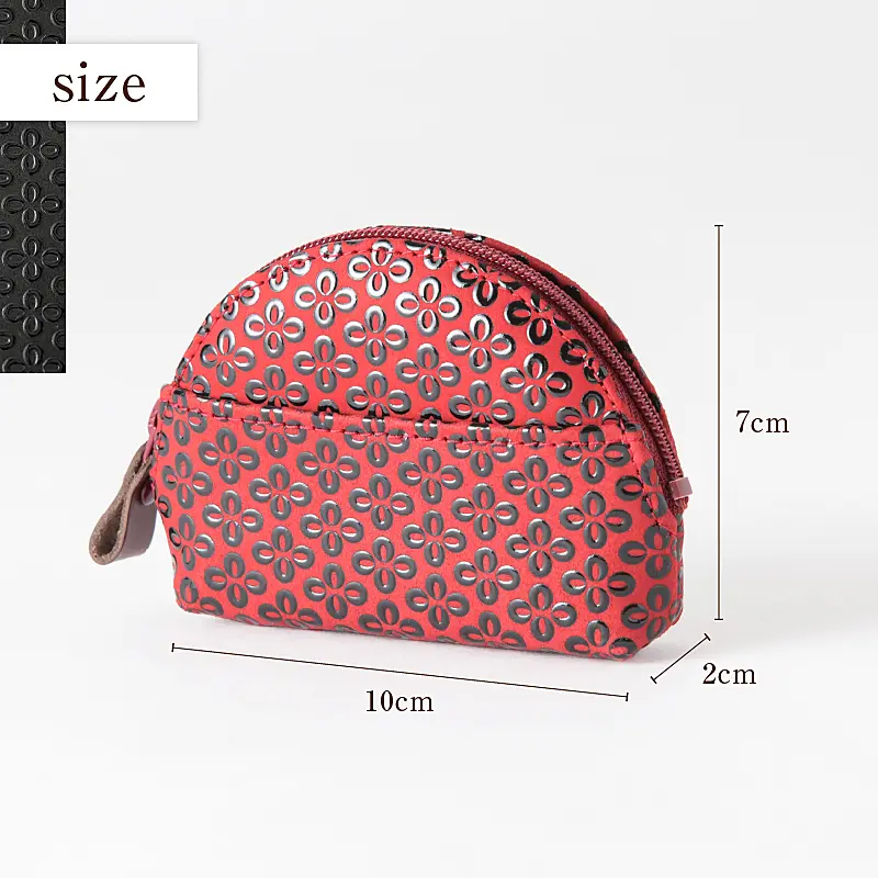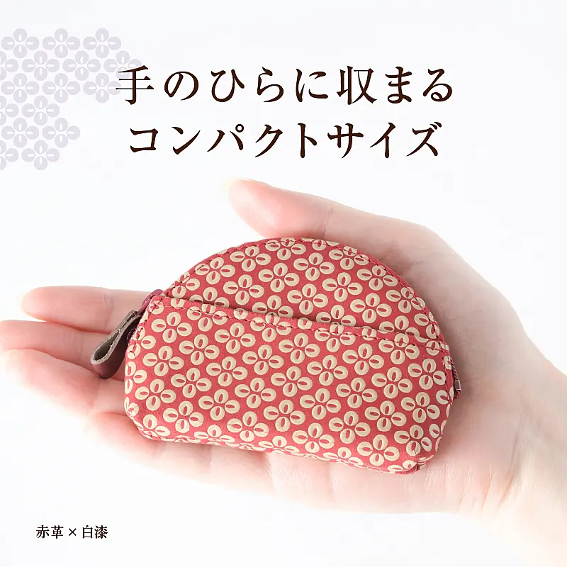 手のひらに収まるコンパクトサイズの小銭入れ。丸みおびた可愛いデザインと、ファスナーが大きく開きやすいのが特徴です。