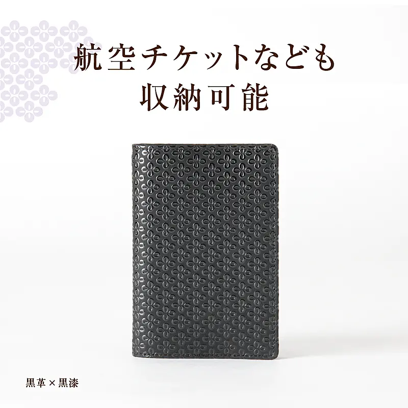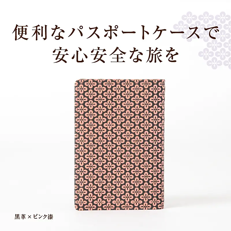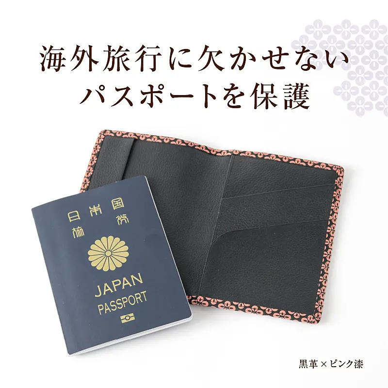 甲州市×印傳屋パスポートケース(黒革×ピンク漆)D5-1202