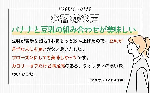 また、飲み口もすっきりと仕上げ、毎日飲んでも飲み飽きない、バナナ風味のおいしい低糖質豆乳飲料です。