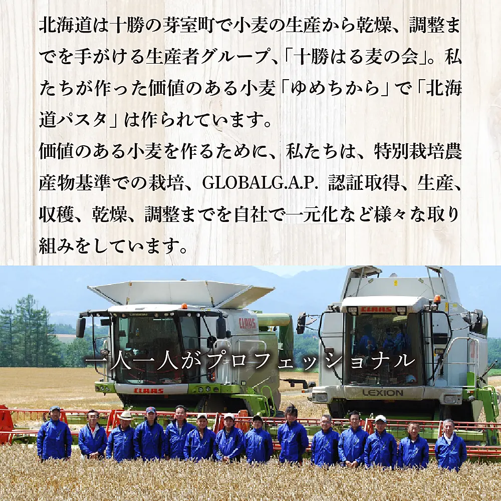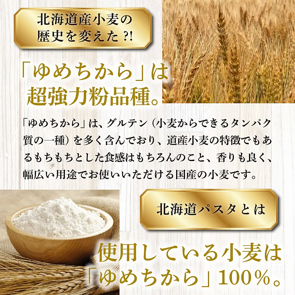 「北海道パスタ」に使用されている小麦は北海道産「ゆめちから」(超強力粉品種)100%です。