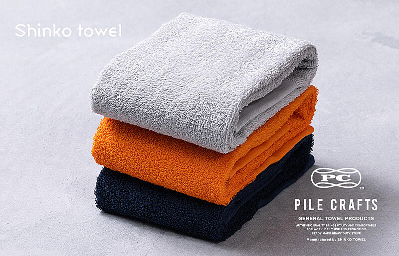 G2637 PILE CRAFTS 3枚組 Bセット フェイスタオル(ネイビー1枚・オレンジ1枚・グレー1枚)