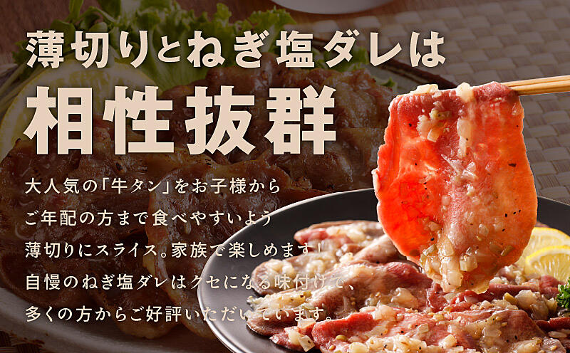 大人気の「牛タン」をお子様からご年配の方まで食べやすいよう薄切り(約3mm幅程度)にスライスし、特製ねぎ塩をたっぷり混ぜ込んだ逸品です。真空冷凍にてお届けします。異なる2種のオリジナルねぎ塩だれをブレンドした特製ねぎ塩はクセになる味付け。