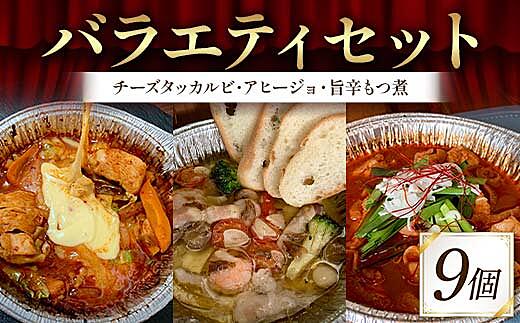 バラエティセット(チーズタッカルビ、アヒージョ、旨辛もつ煮 各3袋)絶品 F6T-718