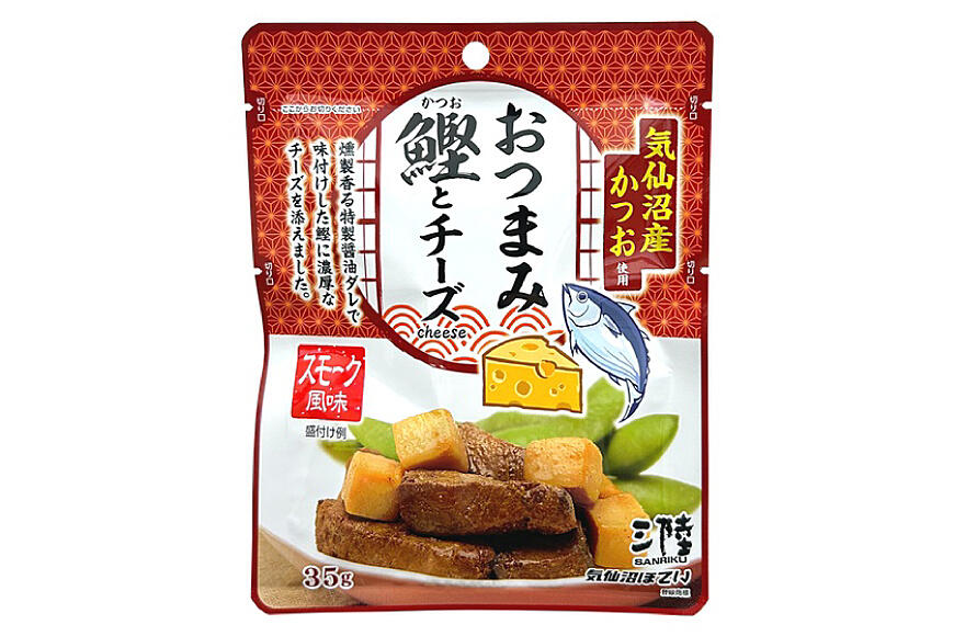 - かつお(気仙沼産)、プロセスチーズ(乳成分を含む)、醤油(小麦・大豆を含む)、砂糖、発酵調味液、食塩、かつお節エキス、香辛料/乳化剤、調味料(アミノ酸等)、セルロース、くん液