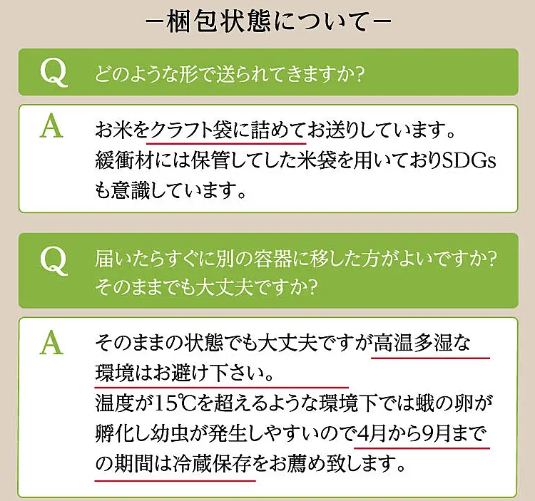 - 消費期限:袋に記載の精米時期から1ヶ月程度を目安にお召し上がりください。