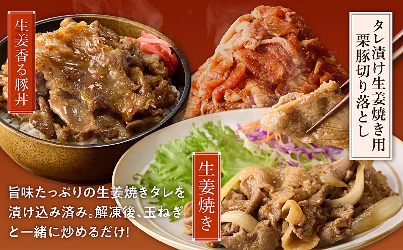 010B1499 生姜焼き用 栗豚 切り落とし 1.8kg【たれ漬け 小分け 300g×6P 豚肉 スライス 焼くだけ】