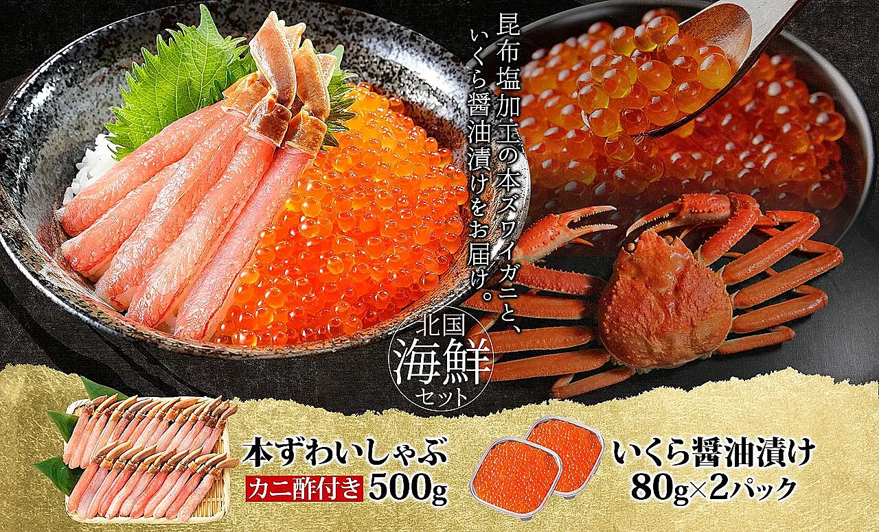 099H3444 本ズワイしゃぶ 500g 蟹酢付 昆布塩加工&いくら醤油漬け80g×2P 海鮮食べ比べセット ズワイガニ
