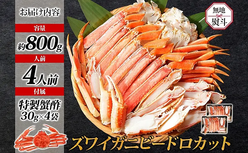 099H3445-1 【無地熨斗】ボイルズワイガニ ビードロカット 400g前後×2P(約4人前) 計800g 昆布塩加工