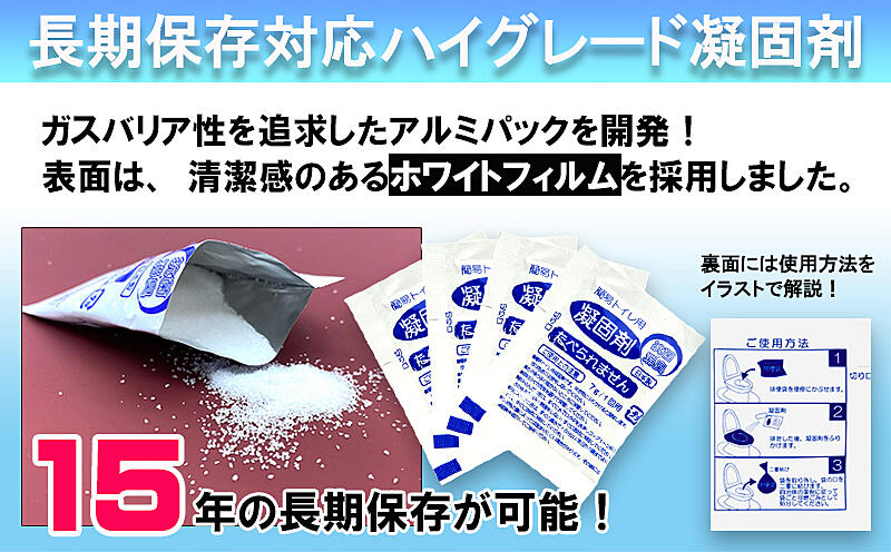 使い方は洋式トイレに付属の排便袋をセットし、排泄したあと凝固剤をふりかけ可燃ごみとして処分します。(各自治体の条例に従って処分してください。)