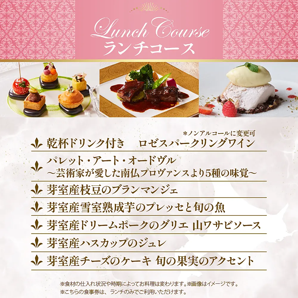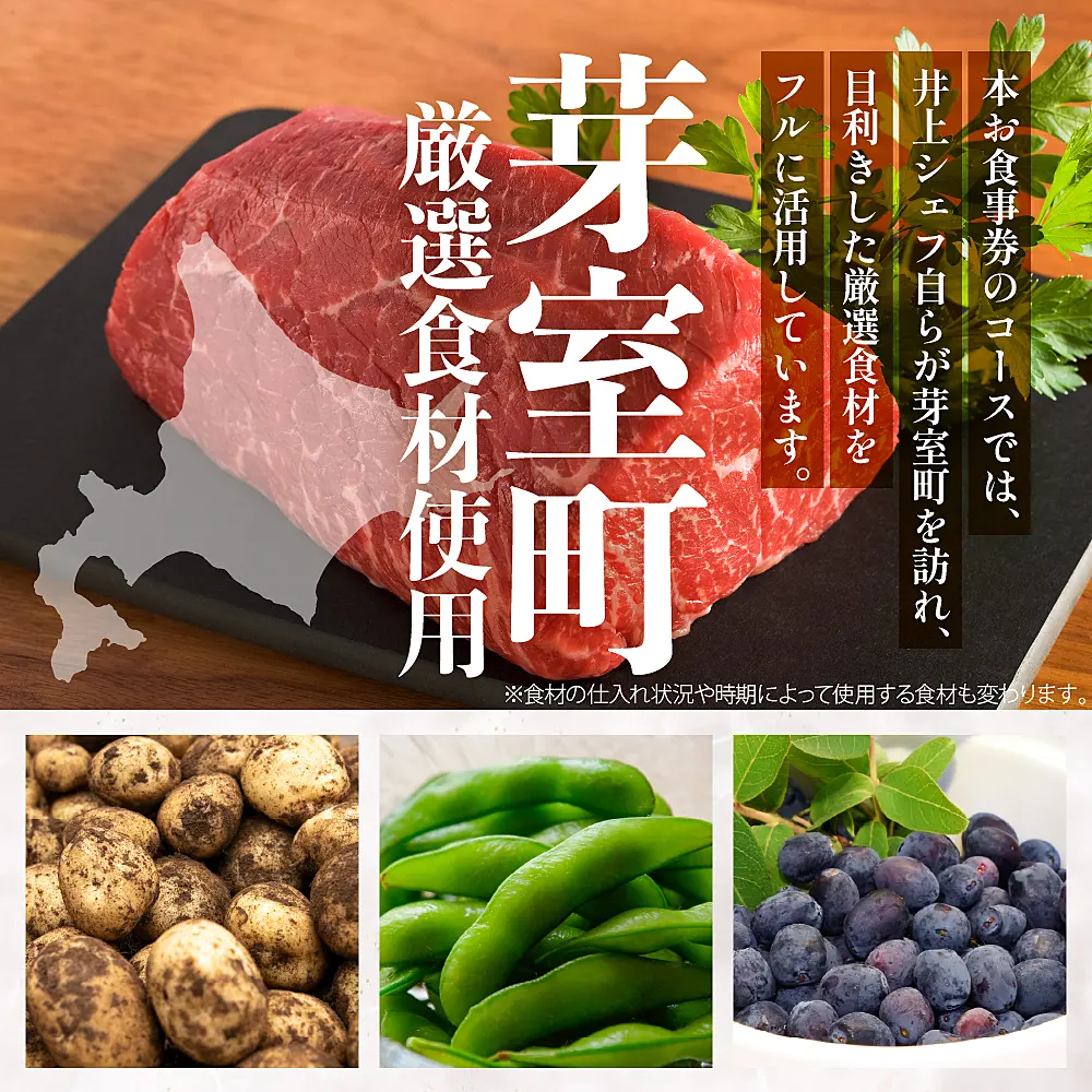 芽室町の特産品を使用したフルコースお食事券をお届けします。