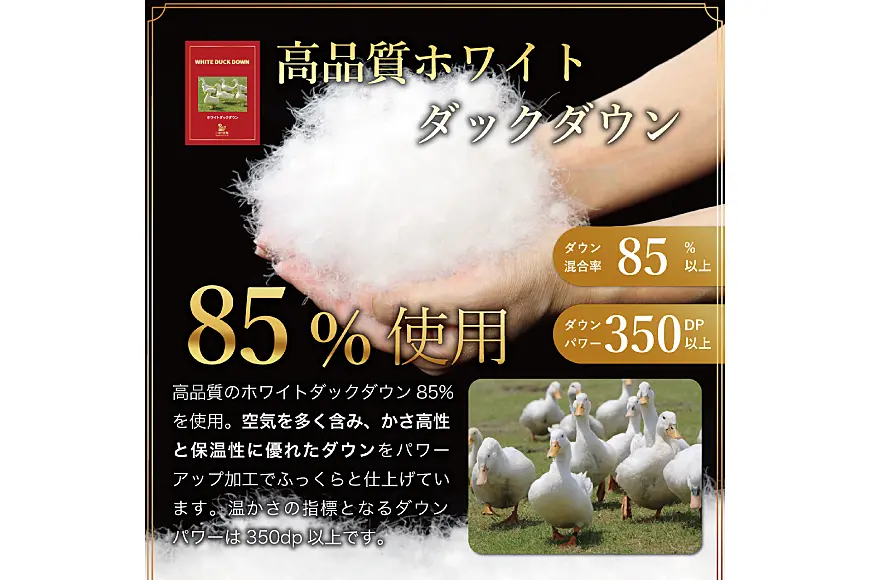 ◆羽毛・・・ホワイトダックダウン85% エクセルゴールドラベル