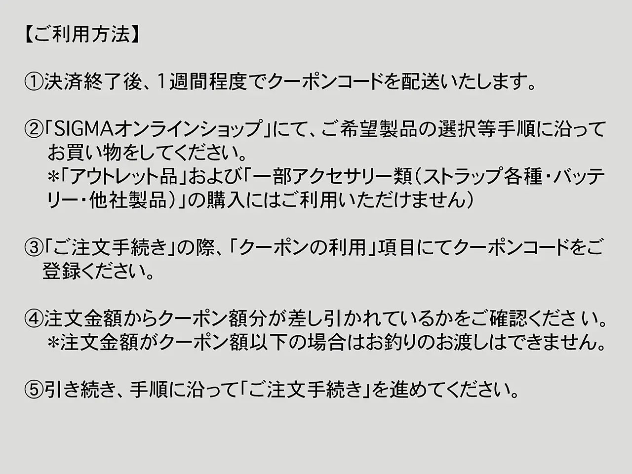 シグマ SIGMA 公式 オンラインショップ カメラ・レンズ 購入クーポン(300,000円分)