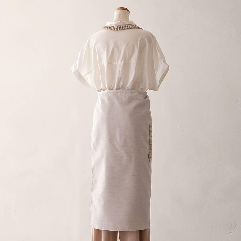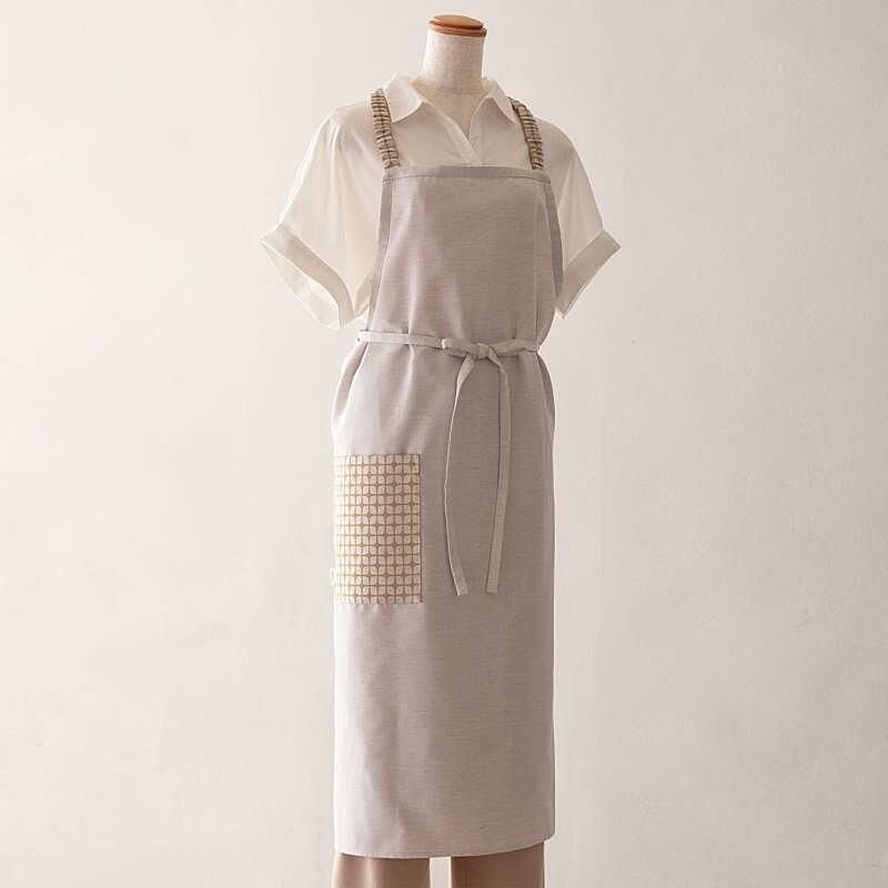 アクセサリーで雰囲気を変えたりなど、日々のお洋服のコーディネートにもあうエプロンです。