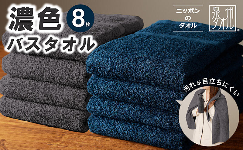 030D247 濃色カラー バスタオル 8枚(ネイビー&ダークグレー 各4枚)