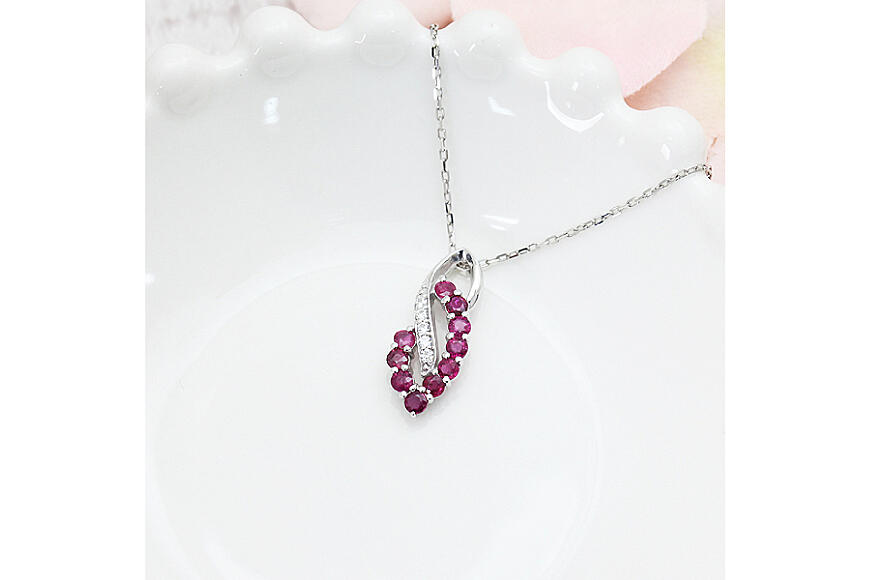 PT900 ルビー&ダイヤペンダント(PT850 ネックレス付) [1点]