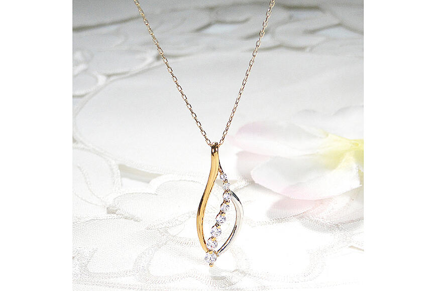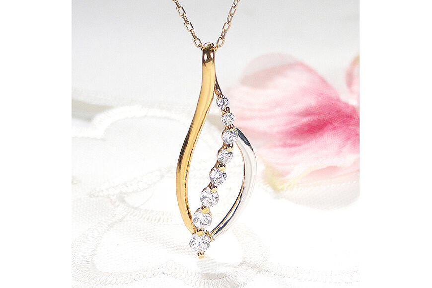 - イエローゴールド プラチナ リーフ ペンダント 葉 雫 ドロップ レディース アクセサリー アクセ ジュエリー ダイヤ レディース 株式会社オーダーメイドジュエリーメイ 山梨県 韮崎市