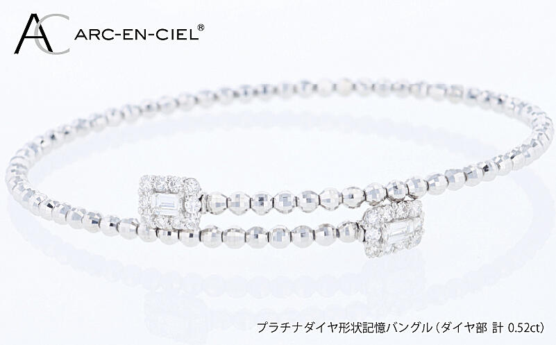 J094 アルカンシェルPTダイヤ形状記憶バングル(計 0.52ct)