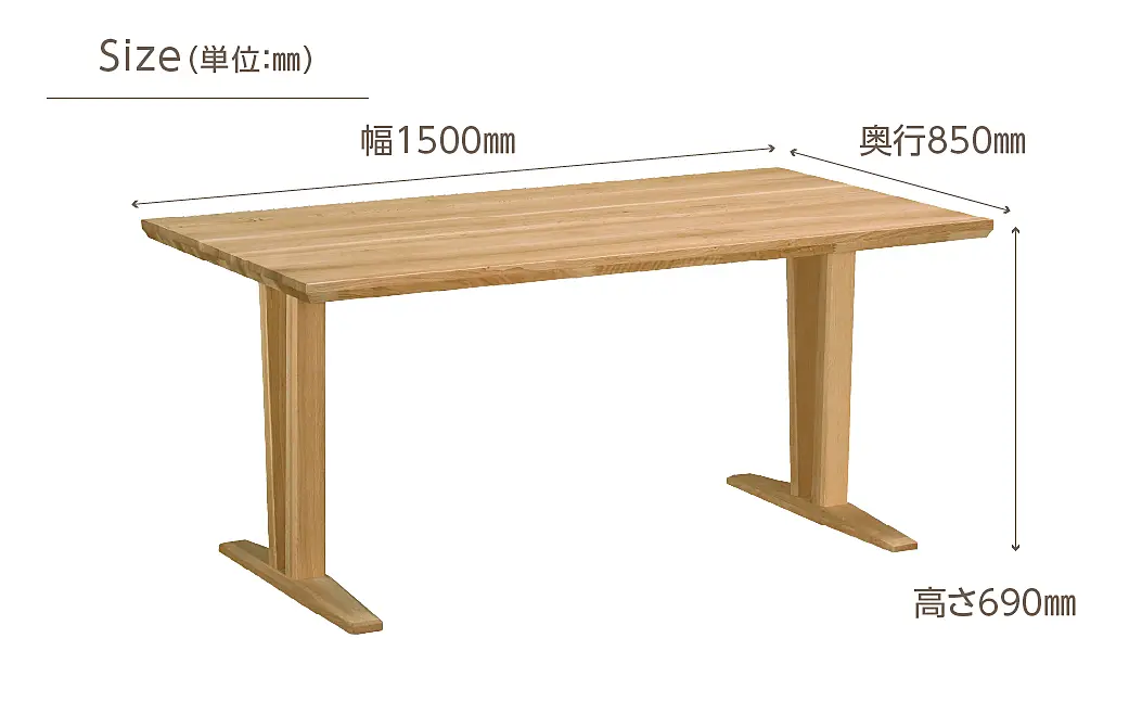 - ■品名:【特別仕様:岐阜県飛騨市産のナラ材使用】ダイニングテーブル(幅1500)
