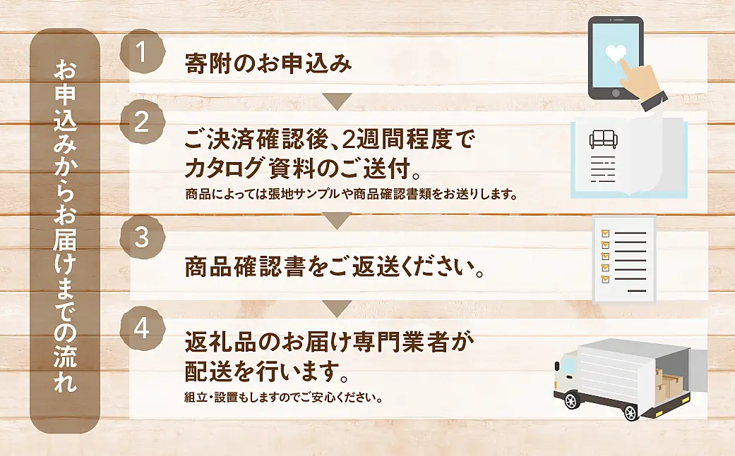 ※組み立て・設置を行うお礼品もございます。