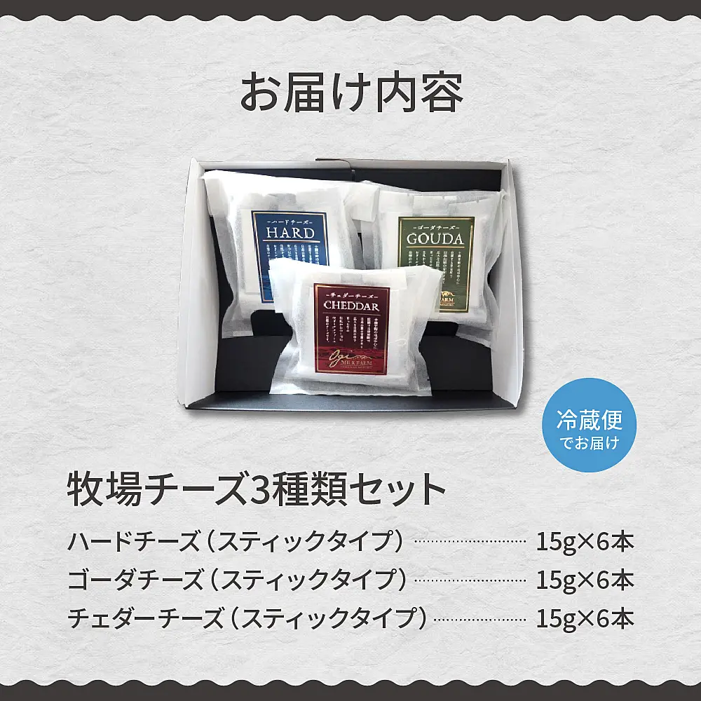 3種類のチーズをスティックタイプでお届けいたします。