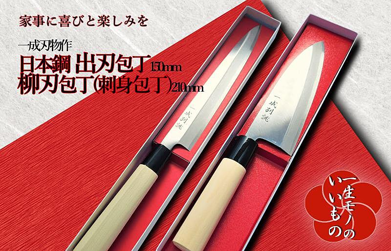 099H1166 日本鋼 柳刃包丁(刺身包丁)・出刃包丁 2本セット 一生もの 一成刃物 和包丁