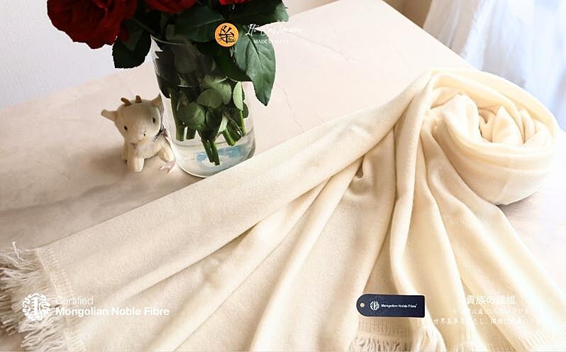 G3333 『Noble Fibre』100%カシミヤ・大判ストール オーガニックホワイト 【高級 カシミア おしゃれ】