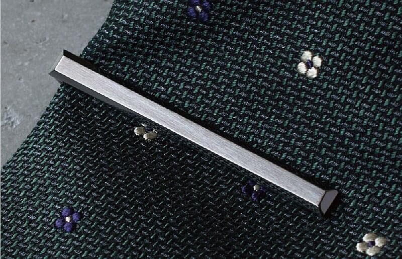 メンズ雑貨ブランドTAVARATのネクタイピン。4つの角を落とし、表面にはサテーナ加工。シンプルさの中にアクセントのある上品なデザインに仕上げています。