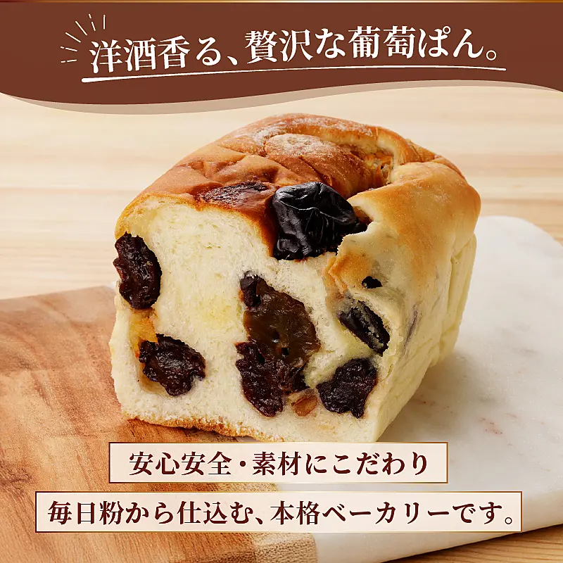 芳醇なぶどうの香りと洋酒による、贅沢で上品な味わいが堪能できる大人のための葡萄ぱん。勝沼産シャインマスカットと巨峰の大房ドライレーズンを、厳選した洋酒で長時間漬け込み、たっぷりと生地に入れ込みました。生地は自家発酵米糀で甘味を、石川県産天然にがりで旨味を、北海道産湯種でしっとりもっちり食感を。一からこだわり抜いた最上級の逸品です。贅沢なひと時をお楽しみください。