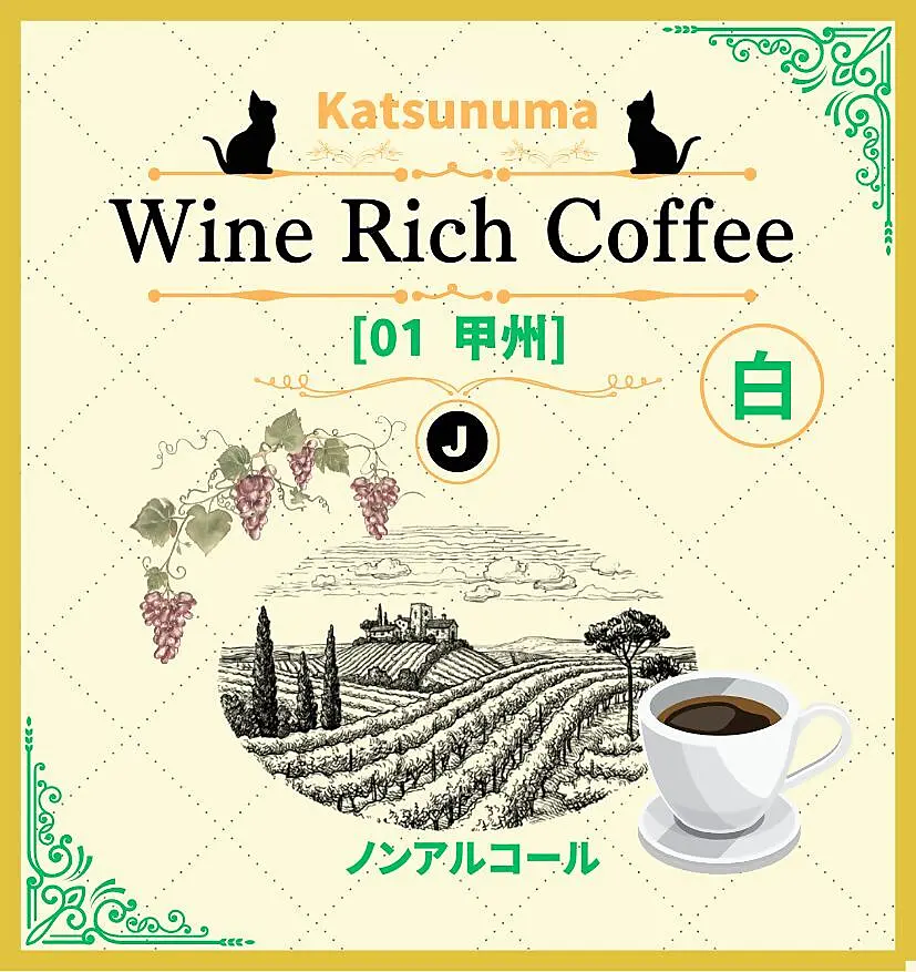 Katsunuma Wine Rich Coffeeは、私が心を込めて作り上げた新感覚のコーヒーです。このコーヒーで、まるでワインを楽しむように、リッチで贅沢なひとときをノンアルコールで味わっていただきたいと思っています。勝沼ワインの豊かな香りとコーヒーの深みが織りなす、特別な時間をぜひ体験してみてください。