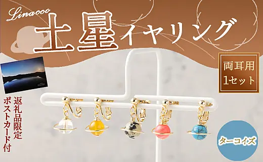 鹿児島県 天城町 土星 イヤリング ターコイズ 1個 天然石ビーズ パワーストーン 両耳用 幅2cm アクセサリー ファッション