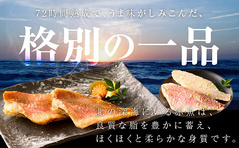 口に入れた瞬間、ほろりとほどける食感が特長です。この赤魚を西京みそで72時間じっくり熟成。味噌の甘みとコクが染み渡った格別の一品です。一口食べれば、ご飯やお酒が止まらない美味しさです!