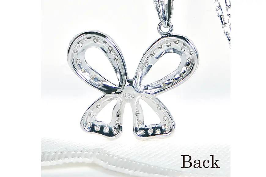 ネックレス プラチナ PT900 ダイヤモンド 0.2ct 蝶 リボンモチーフ【f087-pt】 [20742945]